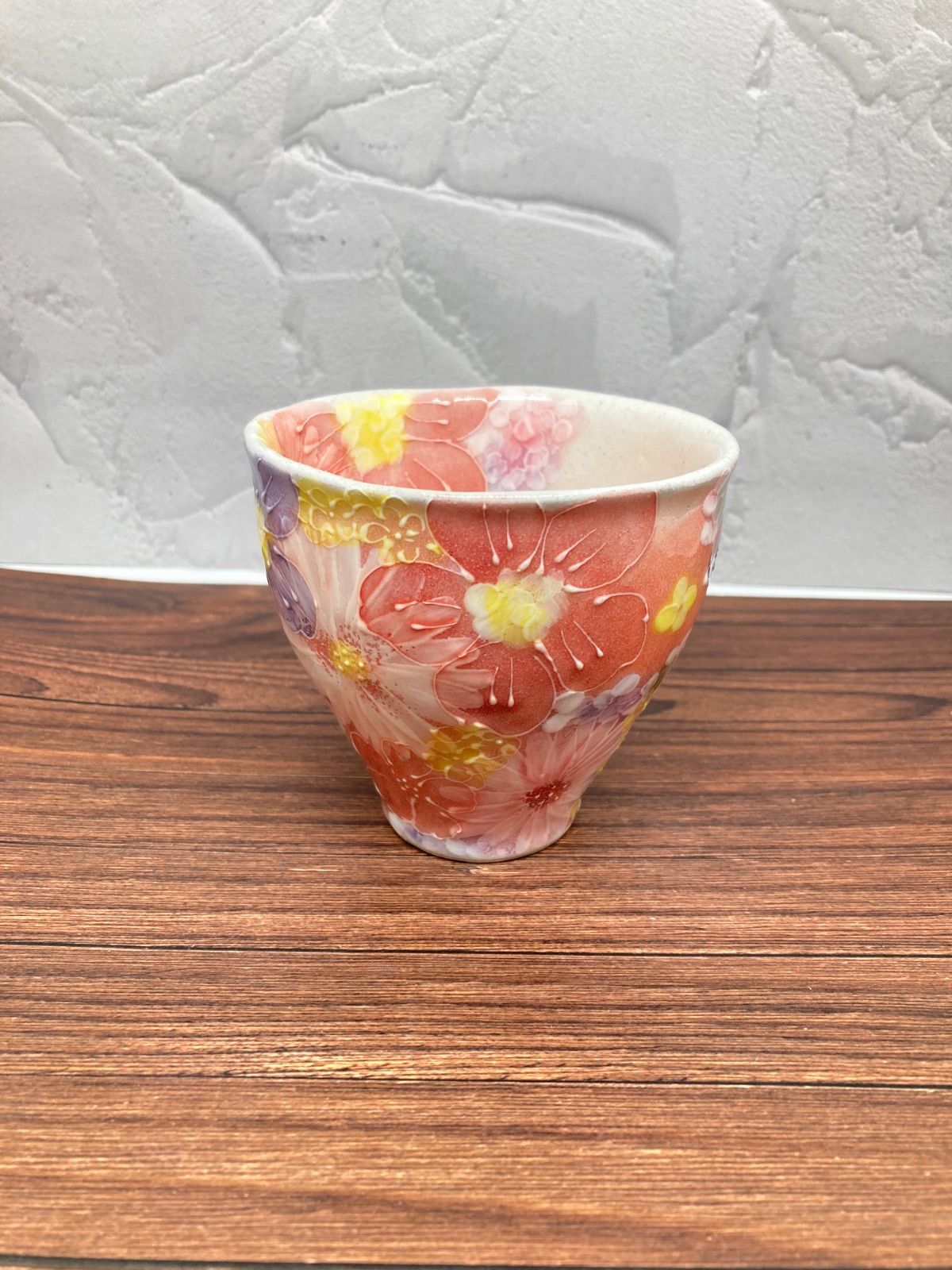 「花風情シリーズ」と呼ばれる彼女たちの作品は、 まさに絵画のような美しさ。 一珍(いっちん)技法を駆使し、立体感溢れる花々が器に咲き誇ります。