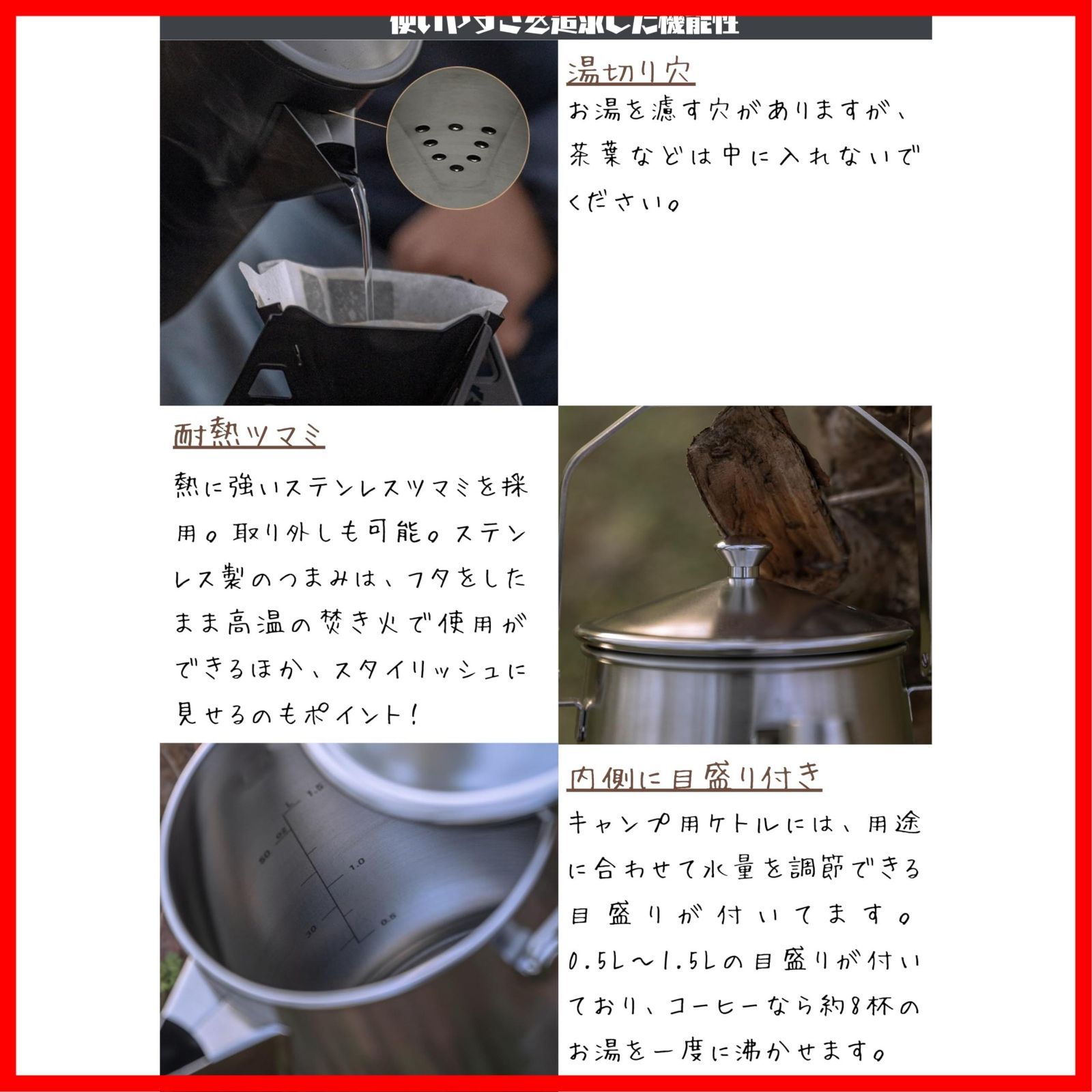 キャンピングムーン(CAMPING MOON) 焚き火 ケトル 直火 ファイアープレイスケトル キャンプケトル 一体成形 ステンレス304 1.5L SW-6