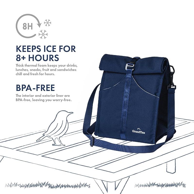 商品名:【在庫セール】GRANDTIES 断熱ランチバッグ レディース メンズ 大人 ティーン向け - ロールトップ 漏れ防止 食事準備用ランチボックスコンテナ 再利用可能なスナックバッグ トラベルクーラー Sサイズ ソフトクーラーバッグ 折りたたみトップサンドイッチ