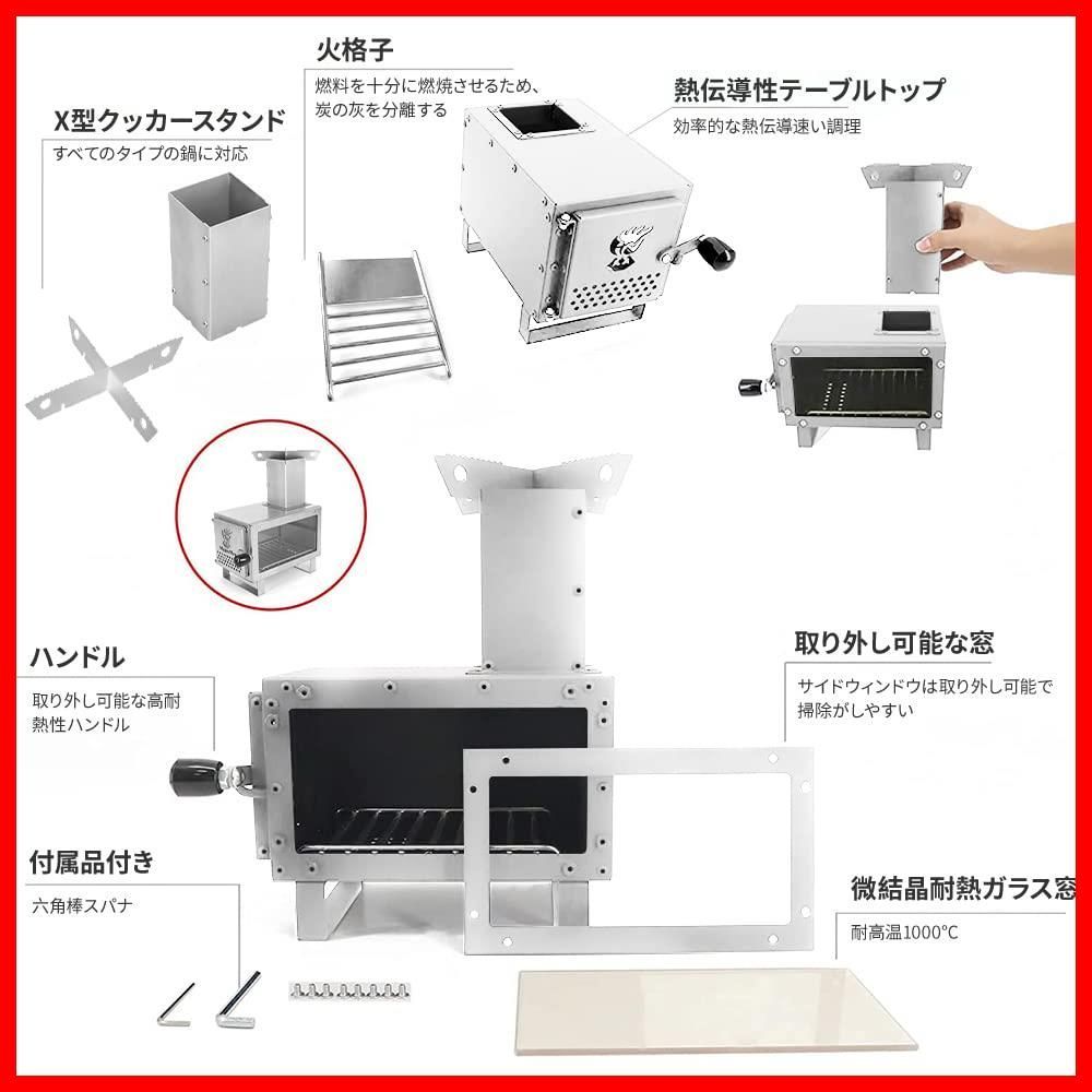 ミニ薪ストーブ ソロストーブ 小型 コンパクト 煙突付き アウトドア ロケットストーブ ストーブ ステンレス鋼 BBQ 焚き火台 調理 耐熱ガラス窓付き 暖炉 キャンプ コンロ 1 2人用 バーベキュー 卓上薪ストーブ 1台2役 テント用 新昇級 キ