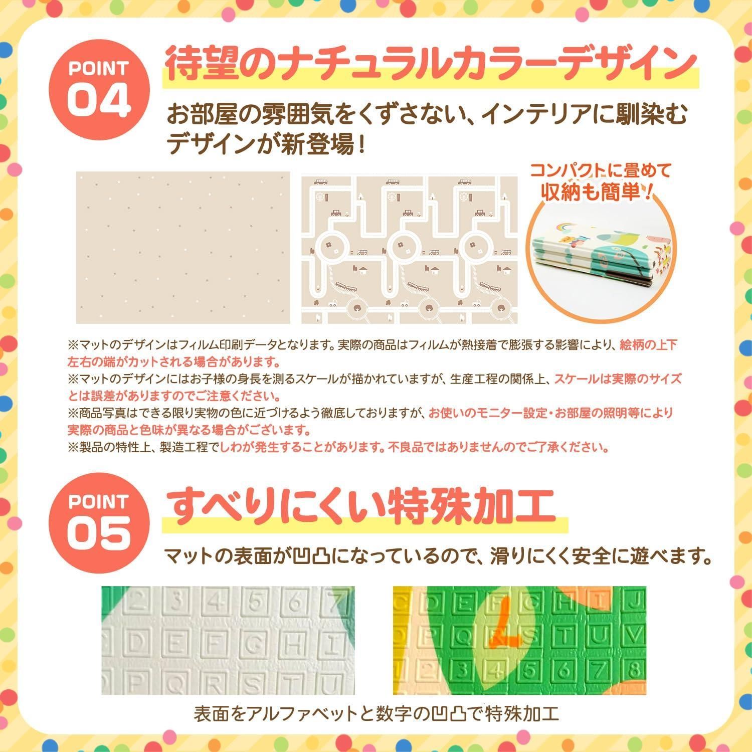 防水 防音 安全素材 折りたたみ 遊べる 赤ちゃん 両面使用可 ベビープレイマット 滑り止め 保育士監修 fungooR 200 x 180 2 cm 日本メーカー製安全検査済 パターン4 スター ベージュ 道路 ベビーマット