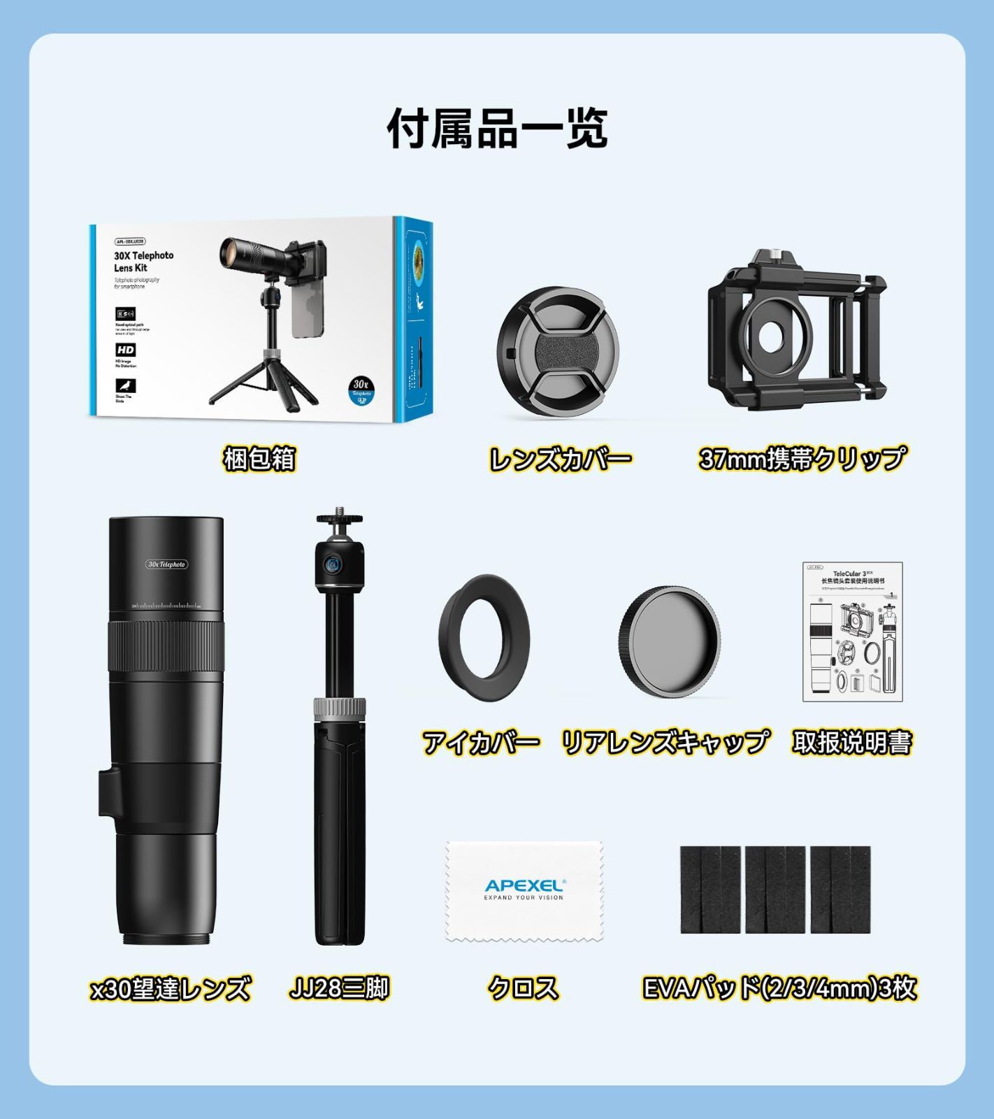 【2025年新版】 APEXEL スマホ望遠レンズ 30倍 単眼鏡スマホ 高倍率 高級 クリアで綺麗な写真撮る 軽量で持ちやすい 99.9%主流な携帯に対応するスマホレンズ 天体観測/学芸会/運動会/野鳥観察/ライブ・コンサート/野球観戦用(T30)