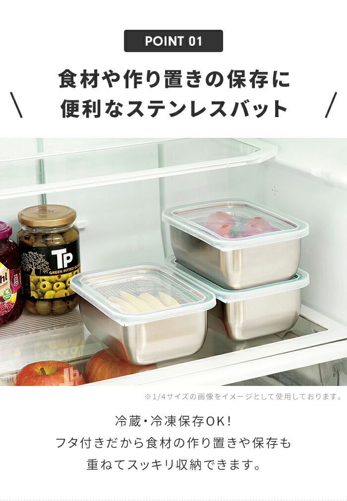 バット フタ 角ザル 1 ザル バット3点 組セット 燕三条 角型 キッチンバット 蓋付き ステンレスバット ステンレスザル ざる 水切りザル ステンレス製 下ごしらえ 水切り 下処理 スタッキング 新生活 一人暮らし