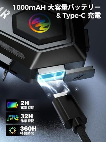 【1000mAh大容量バッテリー & Type-C充電】1000mAhバッテリーを内蔵し、Moman H4Rワイヤレスヘッドセットは1回の充電で32時間の連続使用と360待機時間をサポートします。インカムのType-Cポートで音声、データ転送、充電ができ、面倒なケーブル接続が要りません。