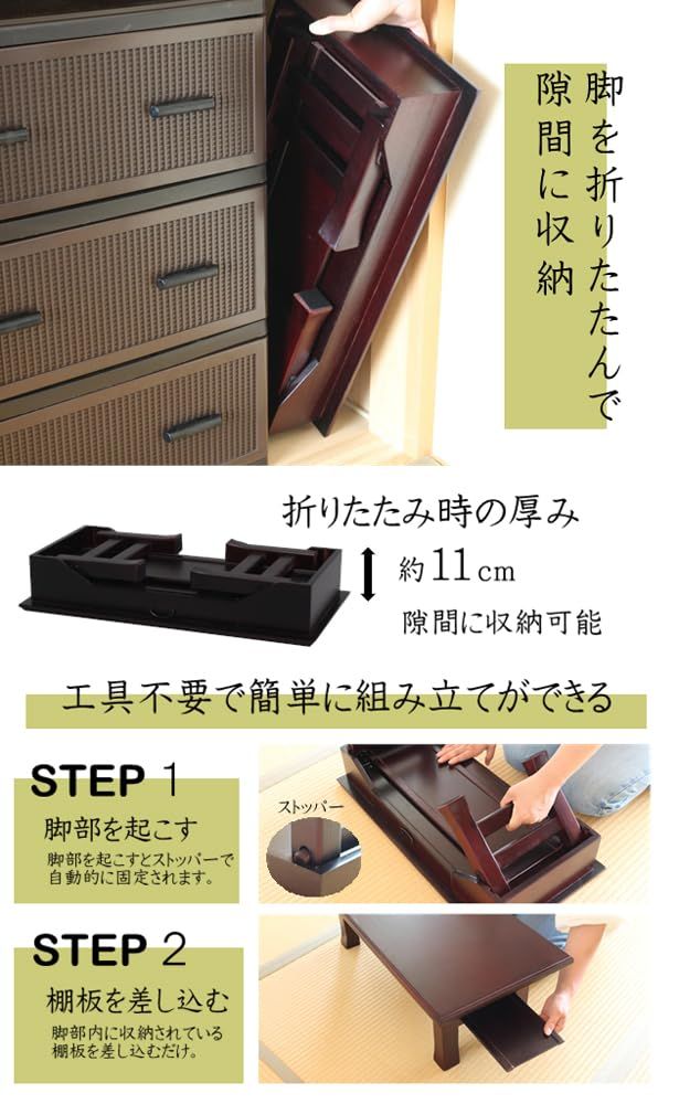 オスマック OSMAC 経机 引き出し付 文机 仏壇台 幅60 奥行30 高さ25 cm 折りたたんで収納 供物台 供養台 写経机 便利机 天然木桐製 ブラウン SXDX 600 BR