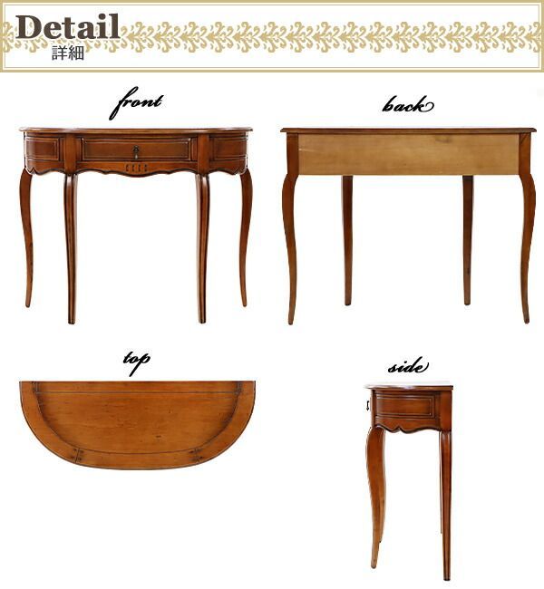 アンティーク調 コンソールテーブル ハーフムーン 半円 約W 108 5 約D 41 約H 85 cm クラシック調 レトロ調 木製 おしゃれ サイドテーブル スタンド 花台 飾り棚 ナイトテーブル 電話台 c antique f 76 選択 ブラウン
