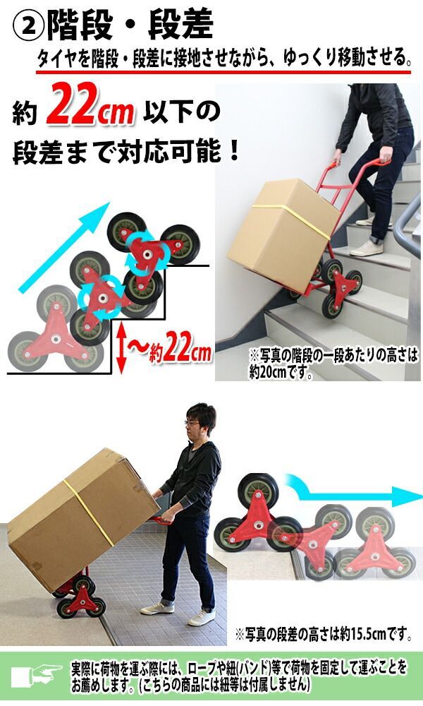 スチール三輪階段昇降機 耐荷重180 kg 段差 22 cm 220 mm スチール製 階段 三輪 3輪 台車 キャリー カート 運搬 物流 ツールカート 段差解消 階段昇降 運搬台車 運搬機 階段昇降運搬車 荷物 業務用 タ daisha h 10 選択 レッド