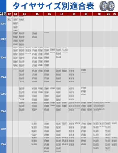 6004の適合タイヤサイズ 185/80R13 175/80R14 185/75R14 185/80R14 195/70R14 195/75R14 205/65R14 205/70R14 215/65R14 225/60R14 185 R14 155/80R15 165/75R15 165/80R15 175/70R15 175/75R15 185/70R15 195/65R15 195/70R15 205/60R15 205/65R15 215/60R15 225/55R15 245/50R15 175/70R16 185/60R16 185/65R16 195/60R16 195/65R16 205/55R16 205/60R16 215/55R16 225/50R16 245/45R16 175/55R17 195/55R17 205/45R17 205/50R17 205/55R17 215/45R17 215/50R17 225/45R17 235/40R17 235/45R17 245/40R17 255/40R17 275/35R17 205/45R18 215/40R18 215/45R18 225/35R18 225/40R18 235/35R18 235/40R18 245/35R18 255/35R18 285/30R18 225/35R19 235/35R19 245/30R19