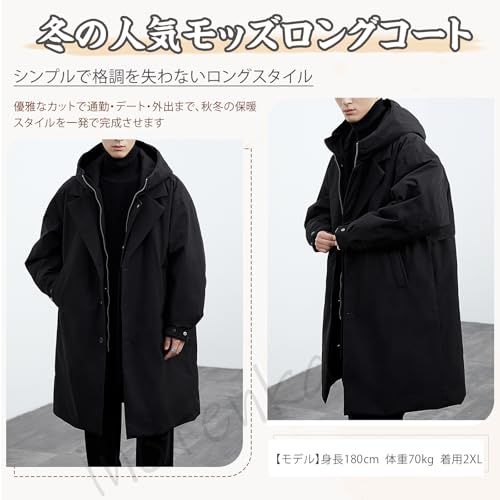 inotenka ダウンジャケット メンズ モッズコート ロングコート ミリタリー コート L 4 XL 厚手 防寒 防風 フード付き 大きいサイズ ミリタリージャケット ロング丈 中綿ジャケット アウター 秋 冬po 29 bff 070