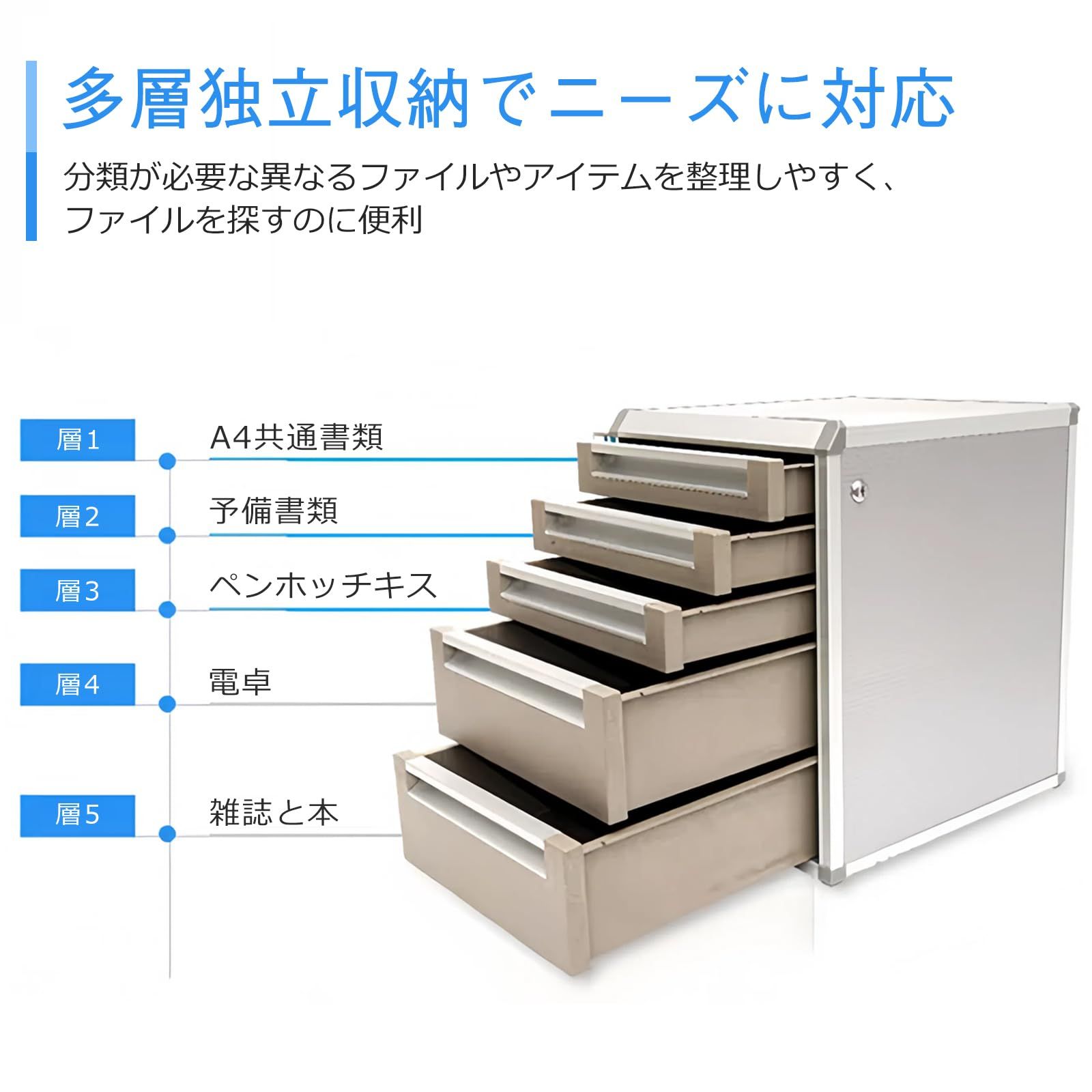QD-SGMP レターケース a 4 横 書類収納ボックス 鍵付き 引き出し 小物 卓上収納 文具収納 ファイルキャビネット 机上用 デスクオーガナイザー 書類トレー 大容量 耐荷重 オフィス 学校 事務用品 5層03 31.5*35*40 cm