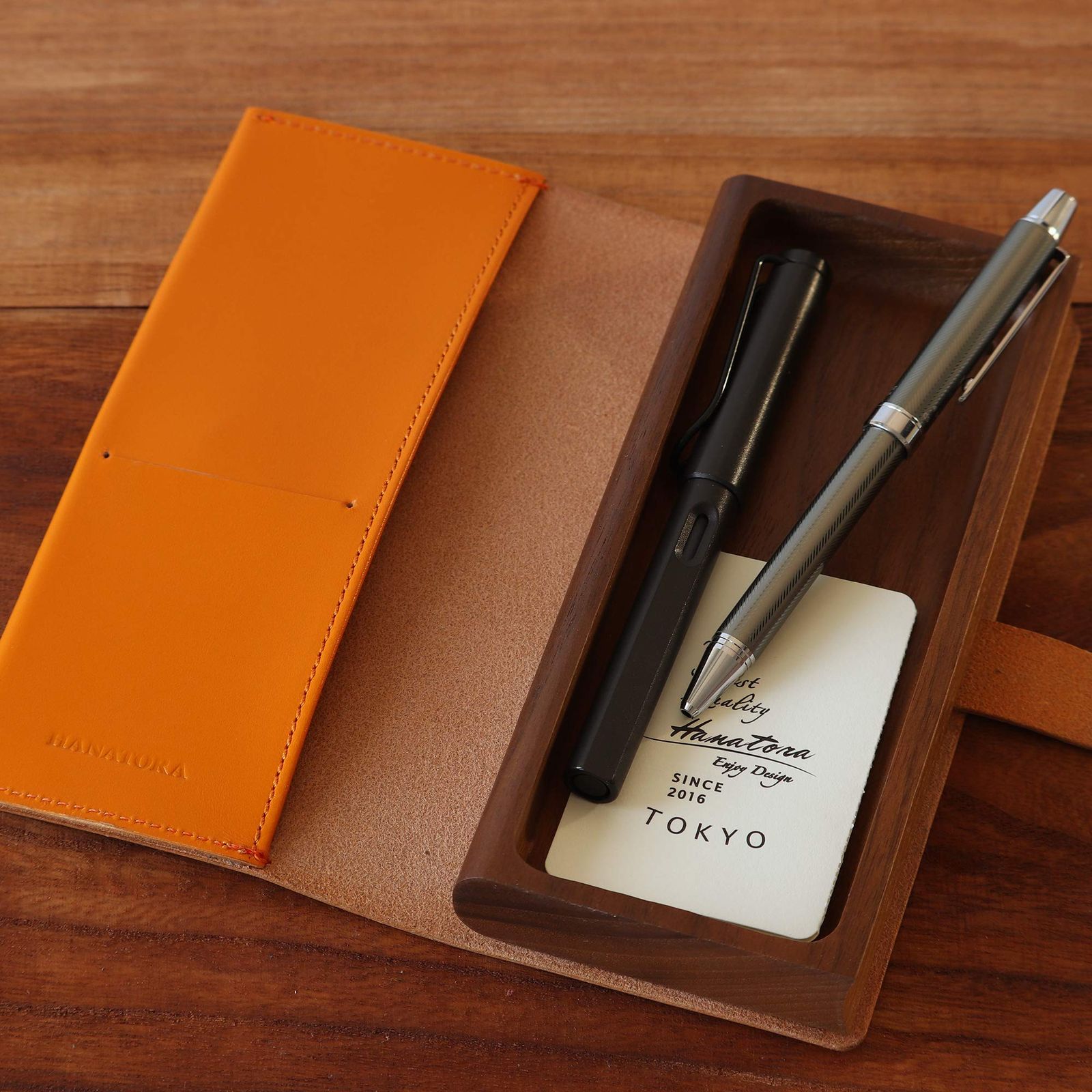 HANATORA Curio ヌメ革 ウォルナット ペンケース 木製 オレンジ
