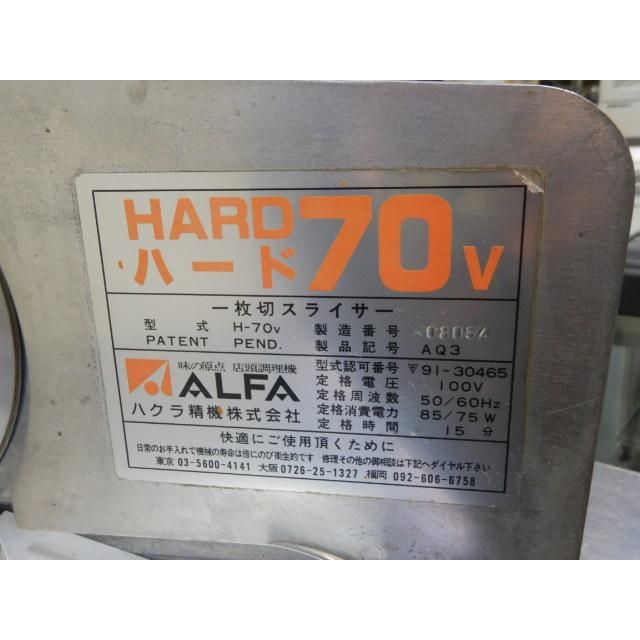 1994年製 ハクラ精機 ハード70 V 業務用 切 パン スライサー mm 100 75 W 平刃203 16 7 kg 手動 ALFA