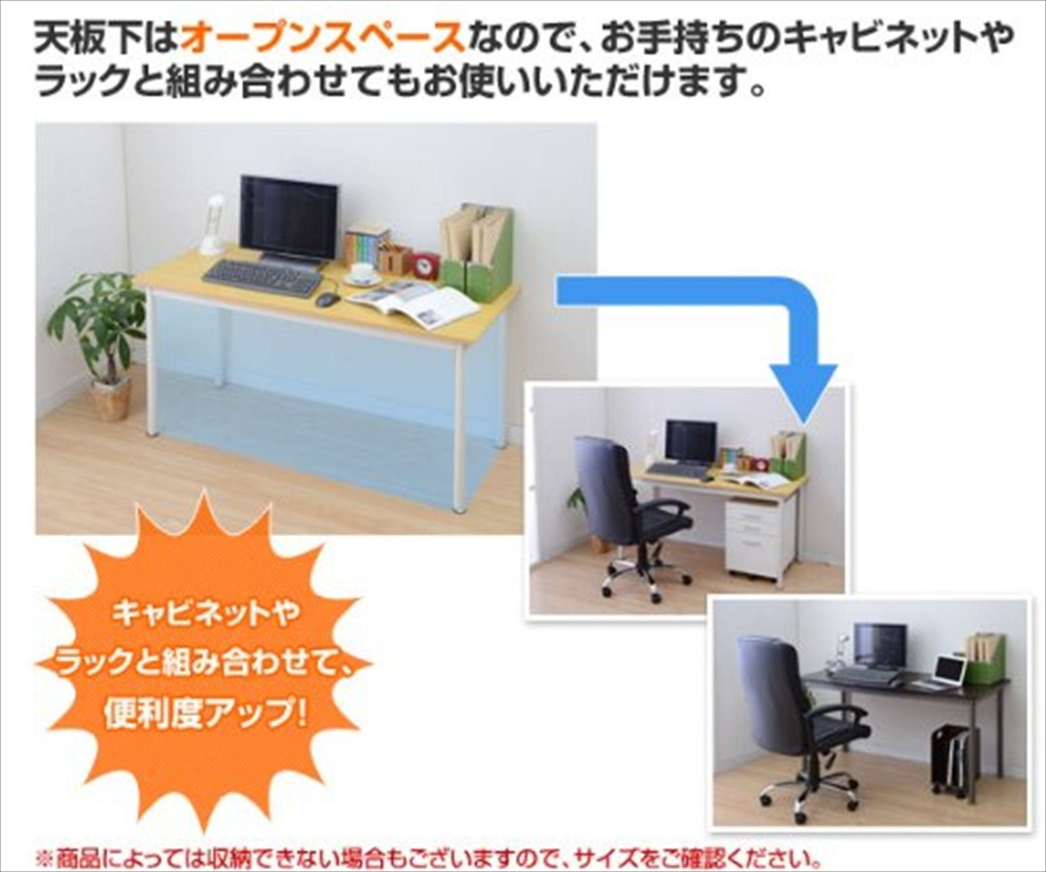天板下はオープンスペースなのでお手持ちのキャビネットやラックとの組み合わせも可能