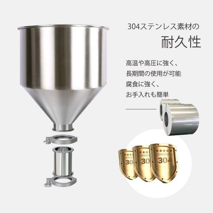 ノズルの設計は漏れを防止し、充填作業を安心して行うことができ、漏れる心配はありません。ホッパーは取り外して洗浄することができ、操作も簡単です。ご注意ください:使用する際は、ホッパーをしっかりと閉めてください。