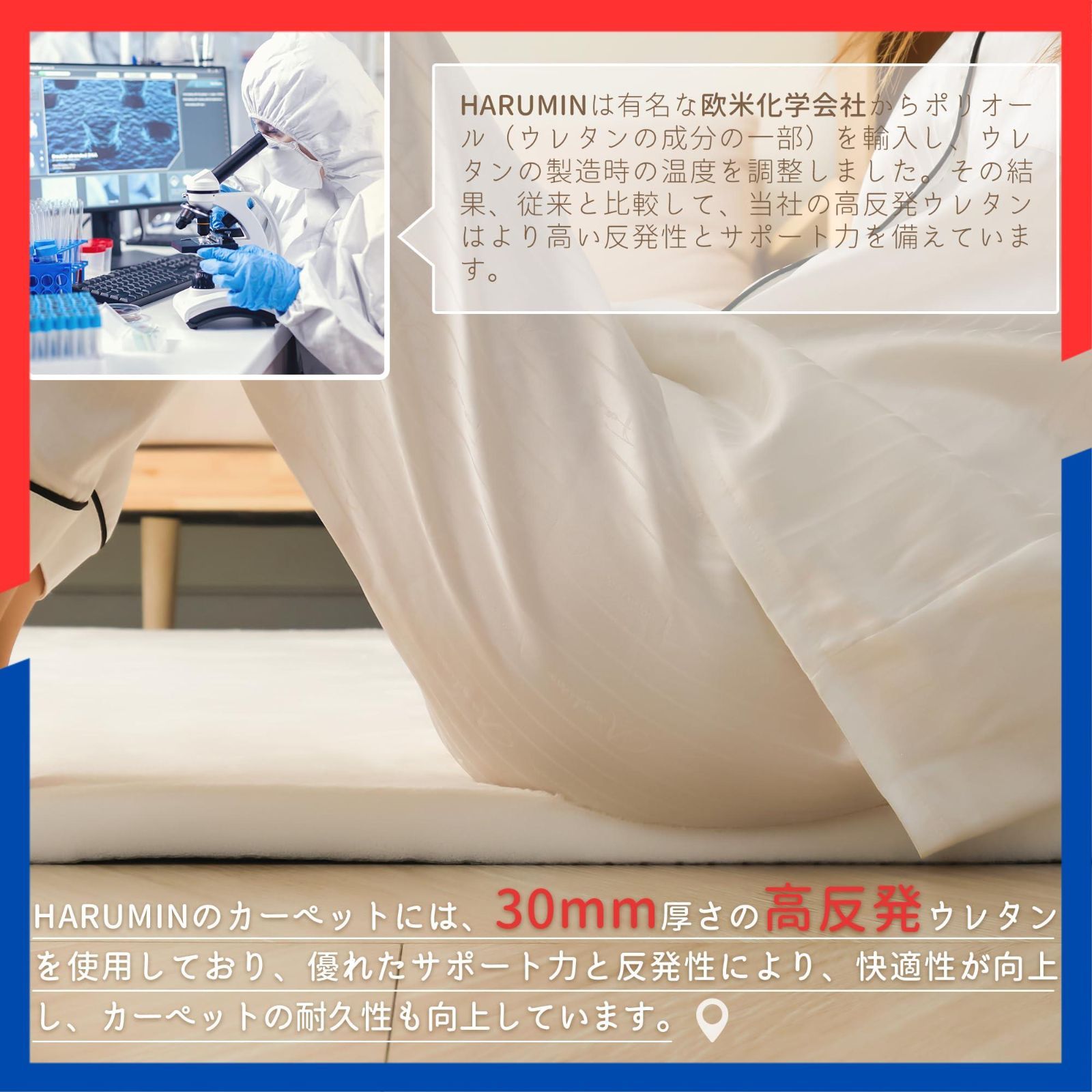 【極厚30mm】30mmの極厚で柔らかいカーペットは、床の存在を感じることなく、どんな姿勢でカーペットの上にいても、長時間座っていても、痛みを感じない!