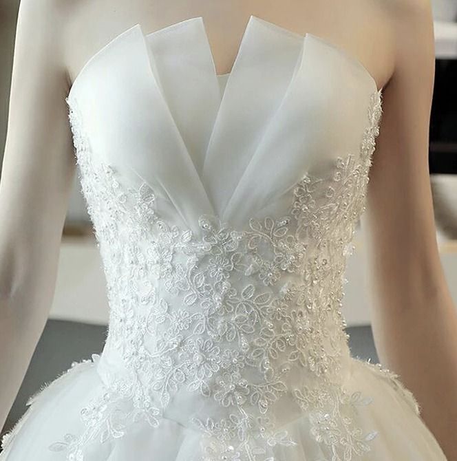 チューブトップ ロング ウェディングドレス 韓国 上品 花