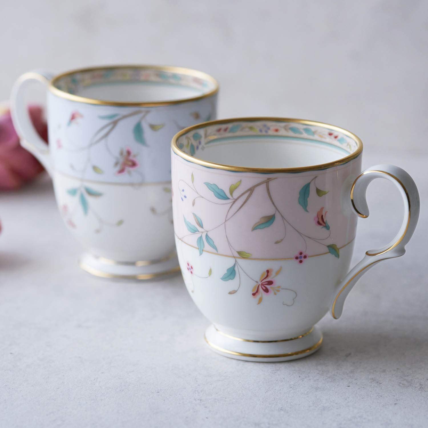 数量 花更紗 プレート 21 cm マグ 320 cc ペアセット ピンク 色変り ブルー ボーンチャイナ ノリタケ M 9712 4409 56 Noritake