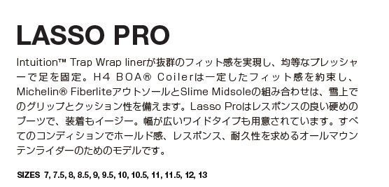 Lasso-Proはレスポンスの良い硬めのブーツで、装着もイージー。