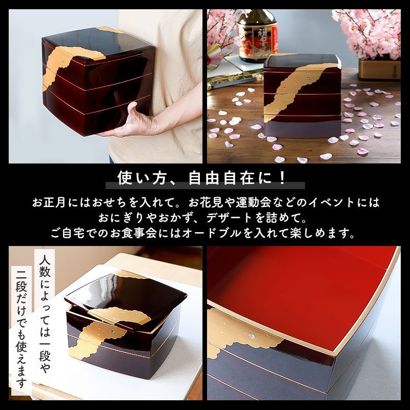 おせち料理以外にも、お花見や運動会にはお重箱として様々なシーンでご使用になれます。