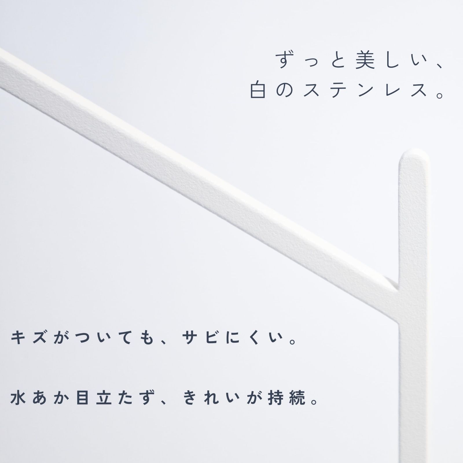 特徴 ステンレスだから【サビにくい】 白の極細凹凸粉体塗装で【水あかが目立たない】