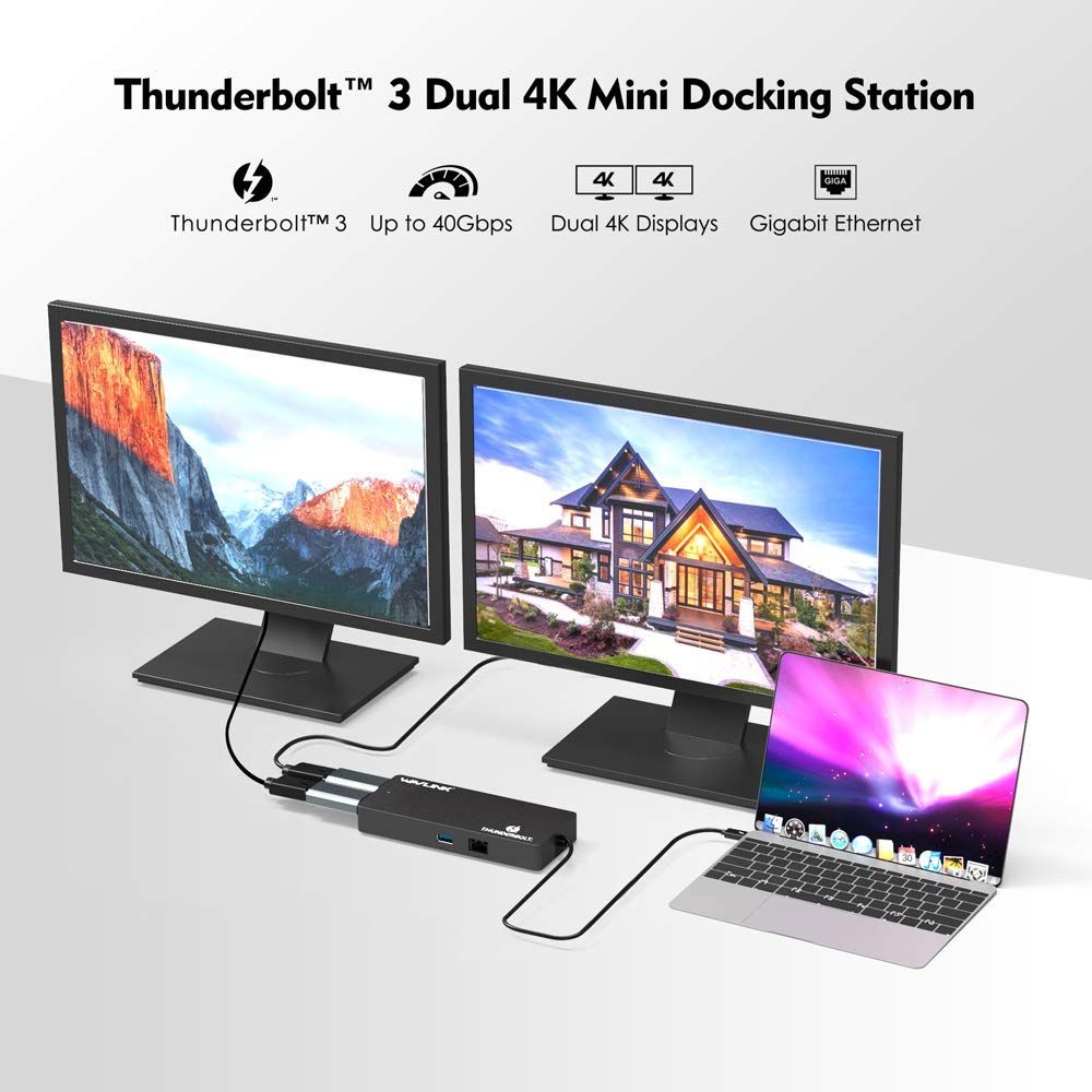 WAVLINK Thunderbolt 3 Mini Dock ドッキングステーション/デュアル 4K/最大5K ディスプレイ出力/2×DP出力ポート/THB3 USB-Cポート/USB3.0 Aポート/ギガビットイーサネットポート搭載、Windows11/10及びその以降、Mac OS 10.X及びその以降、Thunderbolt 3コンピューターなどに対応