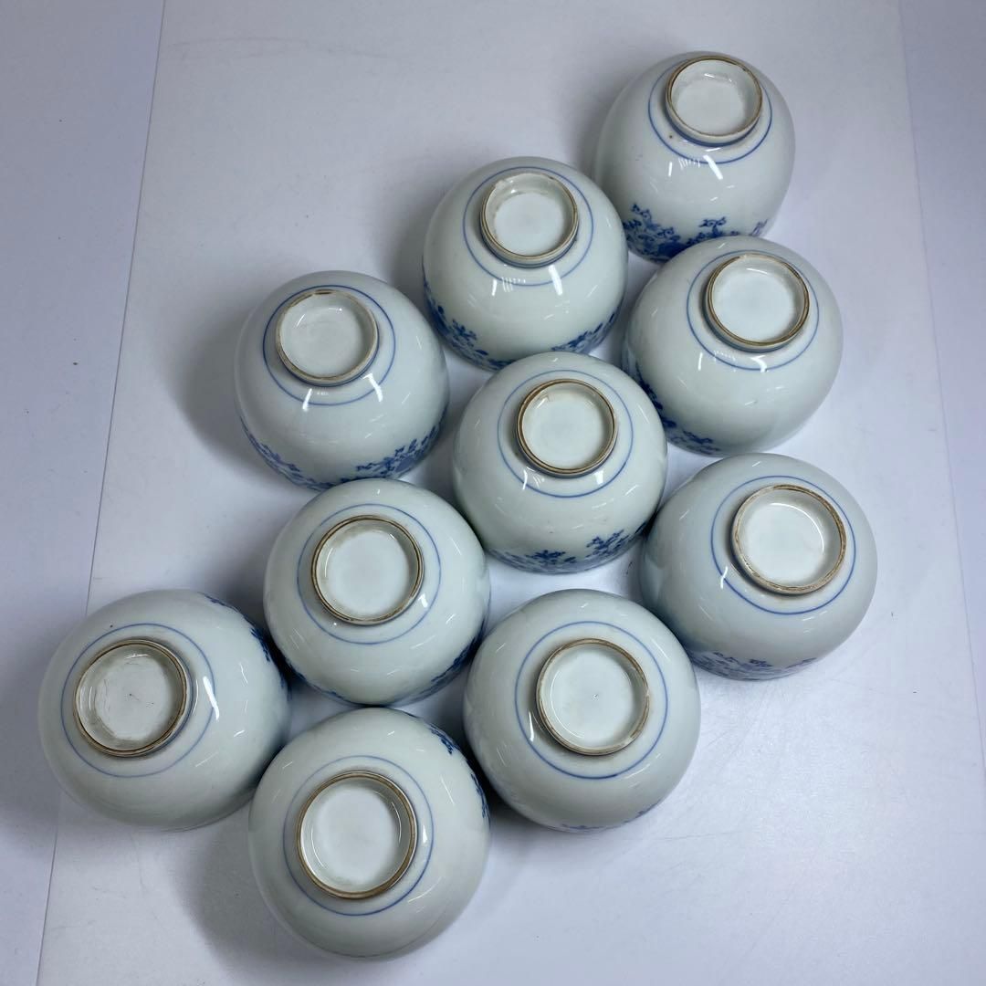 古伊万里 上手染付花唐草湯呑10客 木 口径8 5㎝ 東Y 7 0228 2 F