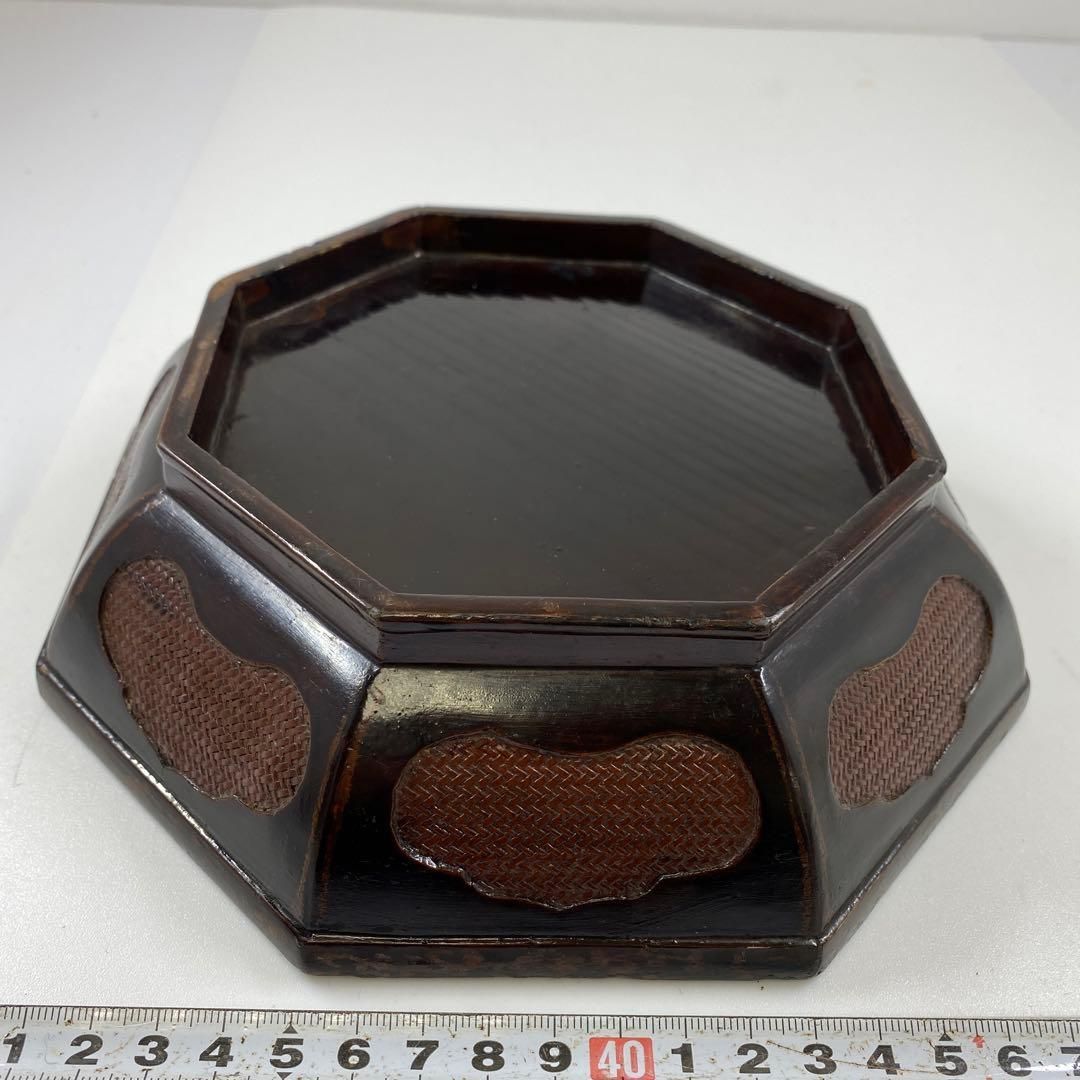 中国古玩 塗木製 八角鉢 幅19 8㎝ タサチ 東な6 1110
