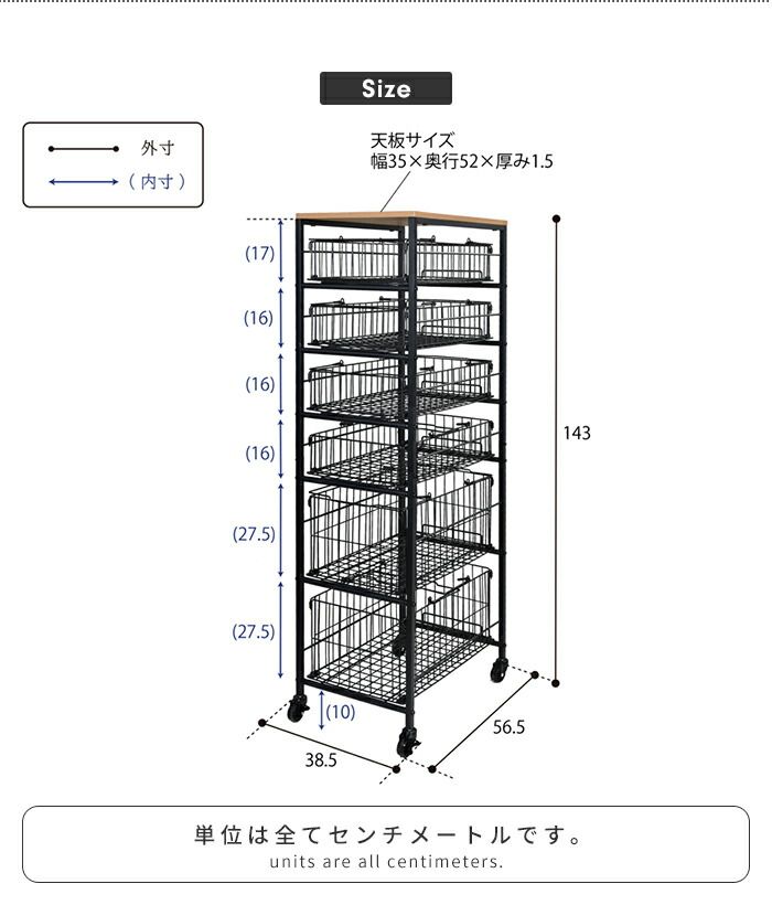 キッチンワゴン 収納ラック キャスター付き 収納ワゴン 6段 バスケット付き 大容量 幅38 5 奥行56 高さ143 スリムタイプ スチールラックバスケット かご付き 便利 収納 キッチン収納 ストック ストッカー キッチン 台所 北欧 おしゃれ 新生活
