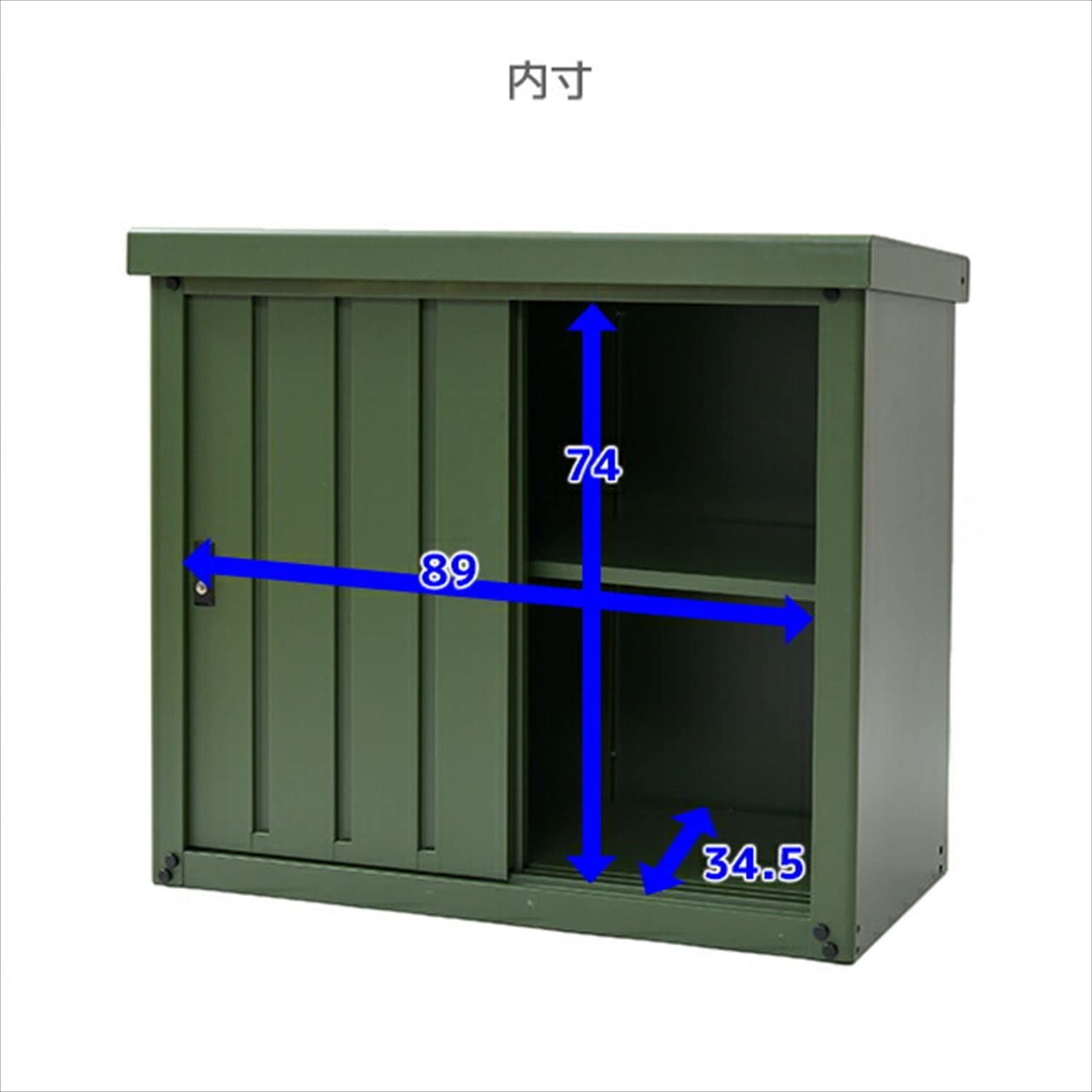 ●組立品です●組立時間:約30-40分●フロント扉に深めのスリットをデザインしたおしゃれなのスチール物置き●カラーはお庭のグリーンや爽やかな青い空にマッチするカーキを採用●ハイテンション亜鉛メッキ鋼板採用で硬度UP●衝撃に強く、サビにも強い●扉に吊り戸式を採用し、開閉がスムーズ●収納物が出し入れしやすい下部レール部フラット●安心の専用鍵付き●収納部内寸:幅89×奥行34.5×高さ74cm●可動棚1枚付き(高さ約10cmピッチ)●可動棚サイズ:幅89×奥行33.5×高さ2cm※完全防水ではないため、吹き込みなどによる雨水侵入のおそれがあります