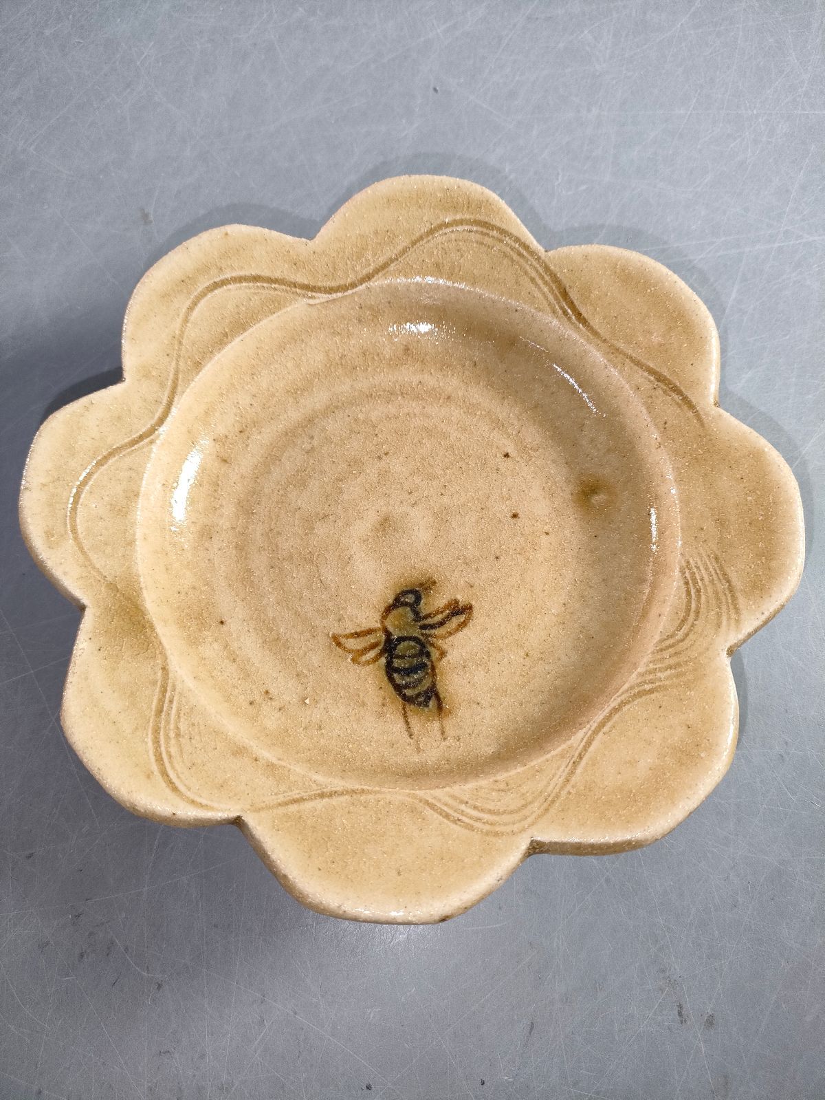 S 10 1 紅日苑窯 小野恵子 黄瀬戸蜂文向付4客 菊文向付2客 織部向付3客