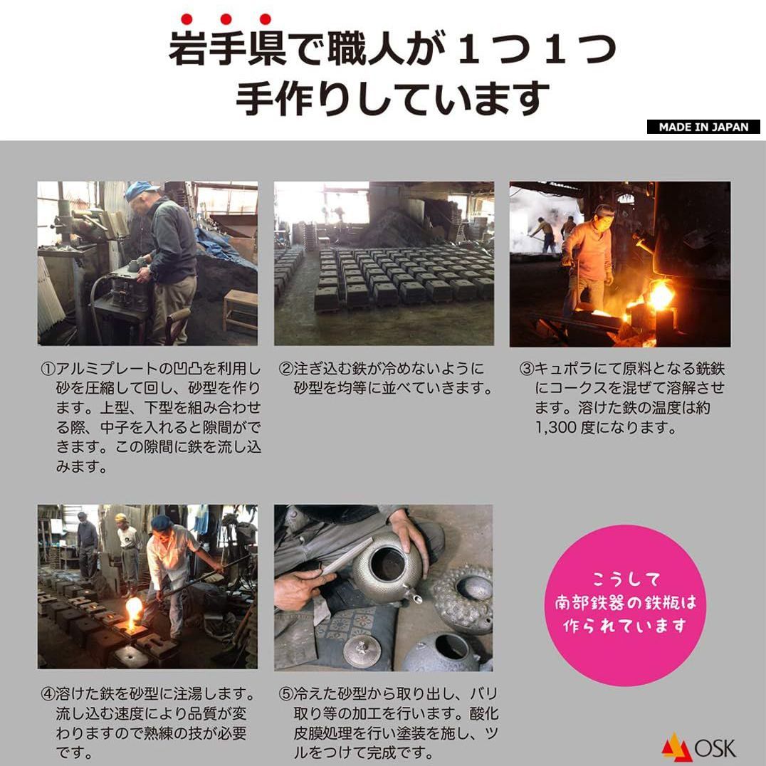 南部鉄器は使いこむほどに光沢が出て高級感が生まれるのが特徴。昔から鉄瓶は鉄分補給の重要なアイテムとして親しまれている。