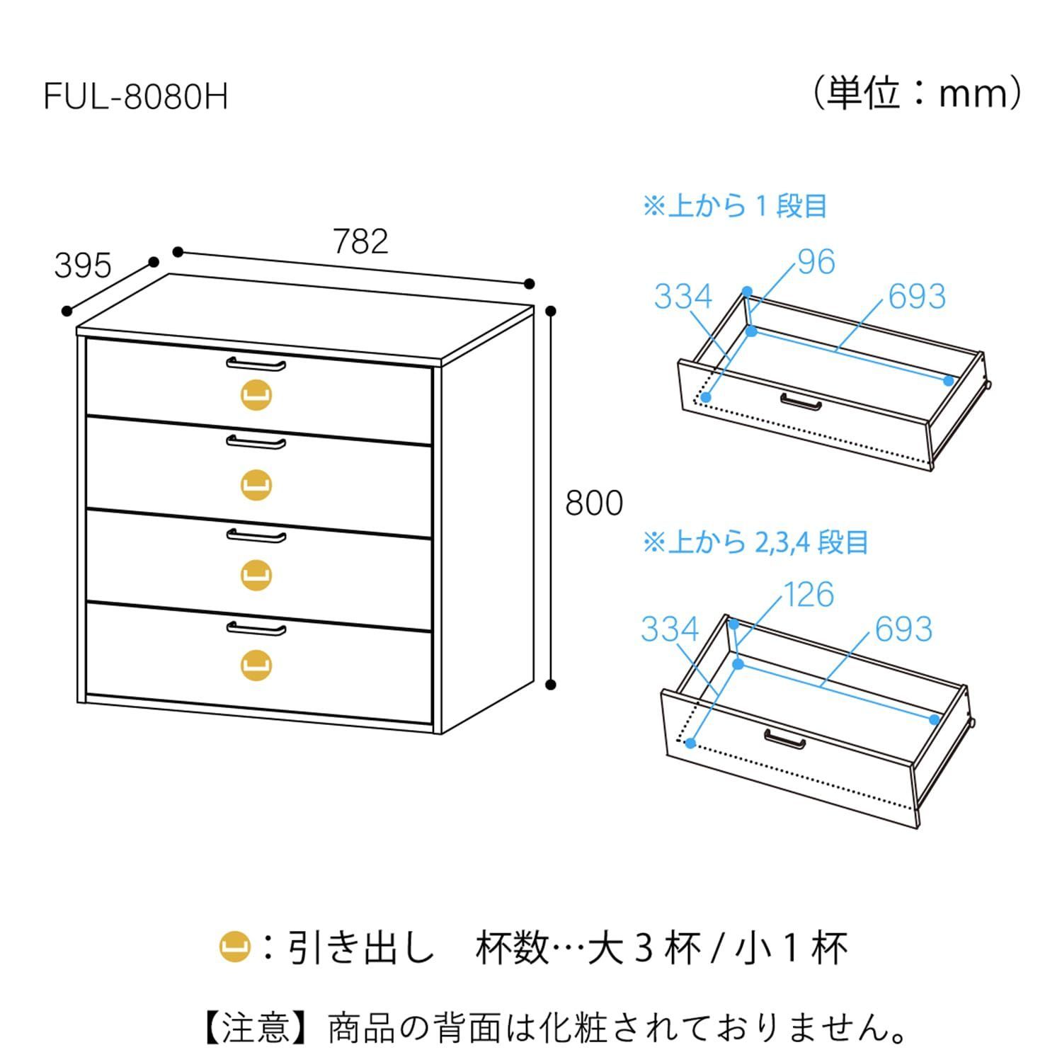 FUL-8080H DKはベーシックな機能のワイドな4段のタンス・チェスト。