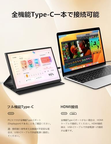 【多機能ポートで簡単接続】映像入力対応のType-CポートとMini HDMIポートを搭載。ノートパソコン、デスクトップPC、ゲーム機、Raspberry Piなどさまざまなデバイスとスムーズに接続可能です。DisplayPort Alt ModeやHDMI対応機器であれば、ケーブル一本で映像出力が可能です。