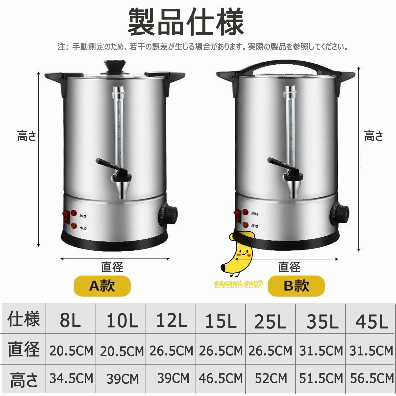 業務用コーヒーバケツ 電気ケトル 湯沸かしポット 電熱保温バケツ 8 L 25 コーヒーポット 30 110℃ 温度調節 ビュッフェ用飲料ウォーマー 保温 保冷用 麦茶ポット コーヒー 花茶 ミルク 果茶 茶などを作る 45
