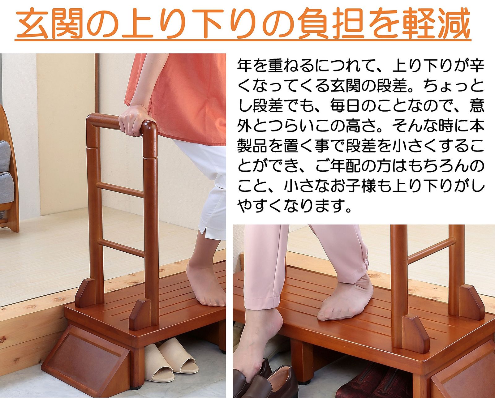 手すり付きで玄関の段差の上り下りがラクラク♪手すり付き玄関台