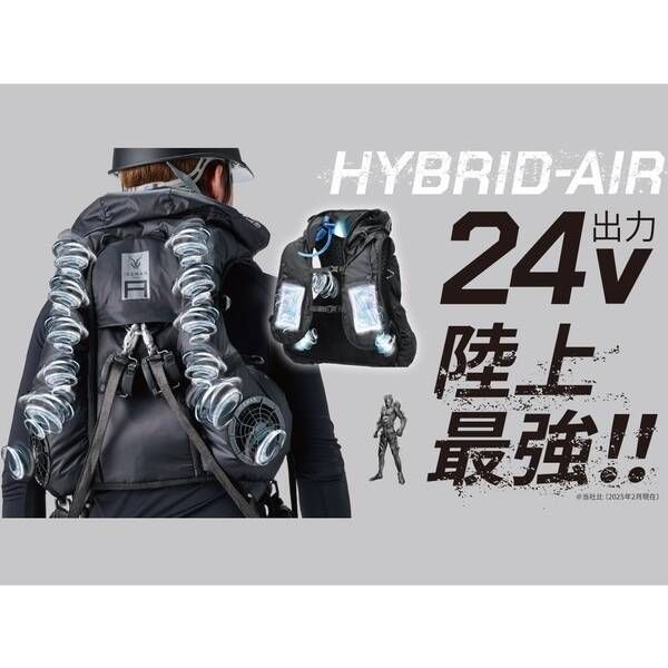 ●24Vファンを起動させ、取り込んだ大量の風がエアーダクターから首元に勢いよく噴射され、首から抜ける際に心地よい涼しさを感じます。また両肩両胸まで2層構造の空気の通り道を作っており、顔にも風を感じることができます。