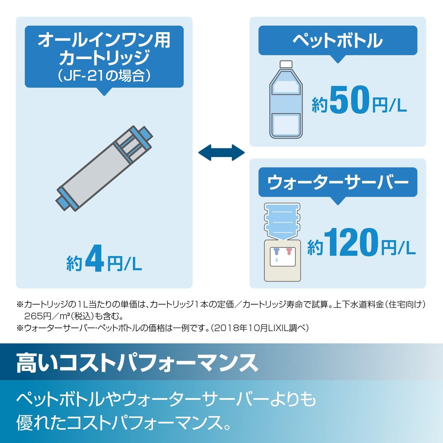 【浄水器内蔵でいつでもキレイなお水を】浄水カートリッジ内蔵。ペットボトルやウォーターサーバーと比較して低コストで手軽に綺麗なお水が使用できます。また後付けの浄水器が不要なため、キッチン回りもスッキリ。