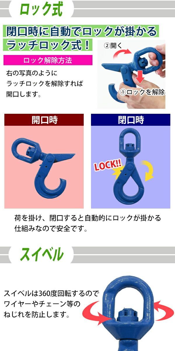 スイベルフック 使用荷重約4 t 約4 0 約4000 kg G 100 鍛造 ハイグレードモデル フック スイベル 回転 吊り具 ロッキングフック ロックフック セルフロッキングフック ラッチロックフック アイタイプ 重量フック s hook 4 b