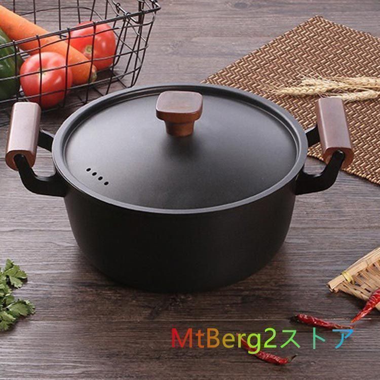 深型 両手鍋 24 cm 木製ハンドル 鉄鍋 ふた付き 蒸気穴 鍋 直火対応 IH対応 ガス火対応 深鍋 厚み クック 丸 両手鍋24 0