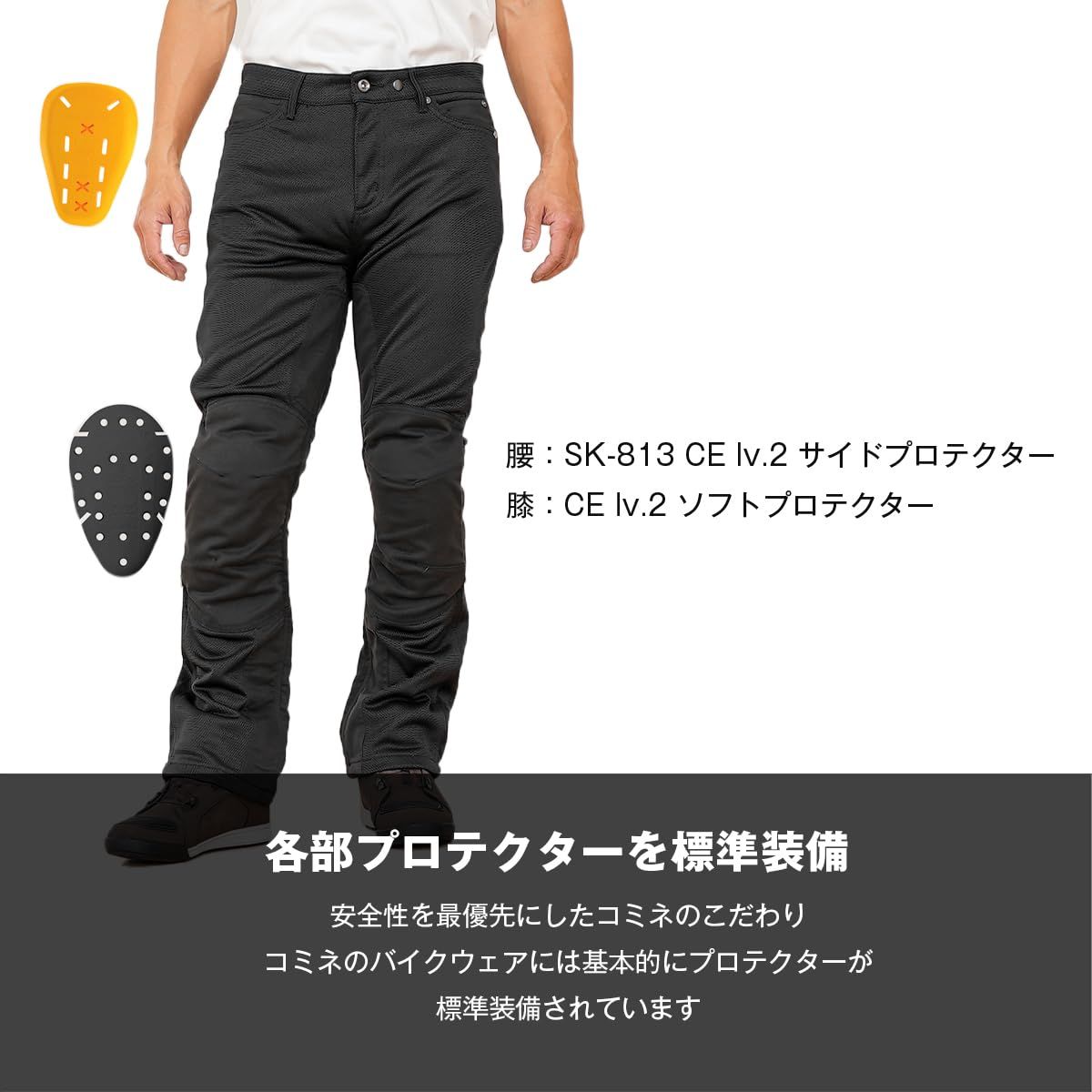 KOMINE PK 759 CE 2プロテクトメッシュパンツ バイク用 春夏向け CE規格レベル2 メッシュ Black WS