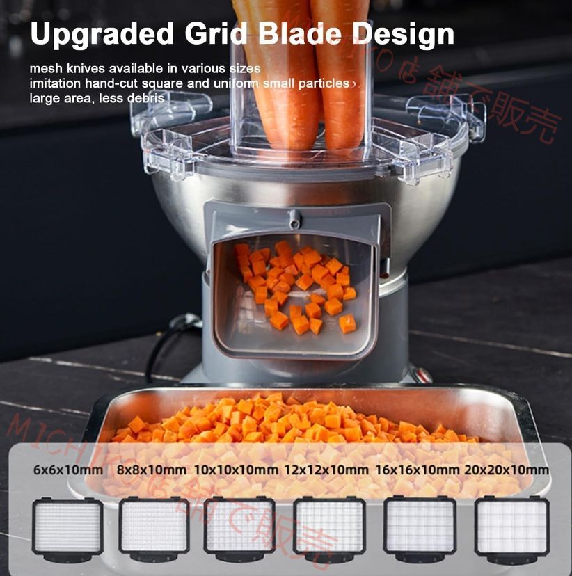 電動スライサー 商業野菜チョッパー電動野菜ダイサー 食品切断機スライサー タマネギ ニンニク ニンジン ジャガイモ フルーツ用の食品チョッパーとダイサー 6 blades PSE認証