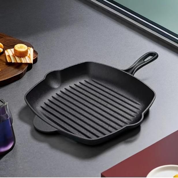厚手の鋳鉄製大型ステーキフライパン 新築家庭用 ステーキフライパン 魚フライ用 特殊ポット ガス 電気コンロ対応 フラット底グリドル 長方