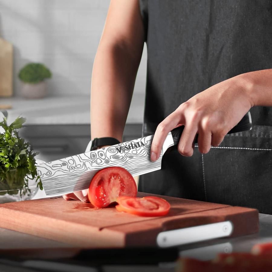 MOSFiATA 包丁セット 牛刀 菜切り包丁 ペティナイフ 高炭素ステンレスキッチンカッターセット木製ハンドル3点 8 コックナイフ 7