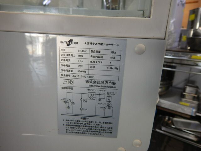2015年製 RT 100 L 照明付 卓上 対面 冷蔵ショーケース mm 4面ガラス 後扉 棚1段 39 kg ケーキケース