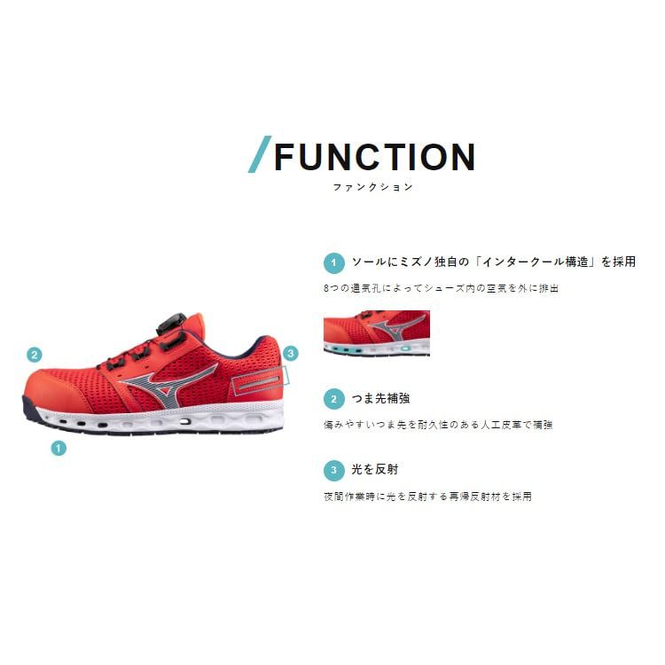 通気性に特価したBOA搭載モデルJSAA規格A種認定品アッパー:人工皮革・合成繊維・合成皮革通気性・耐滑・衝撃吸収