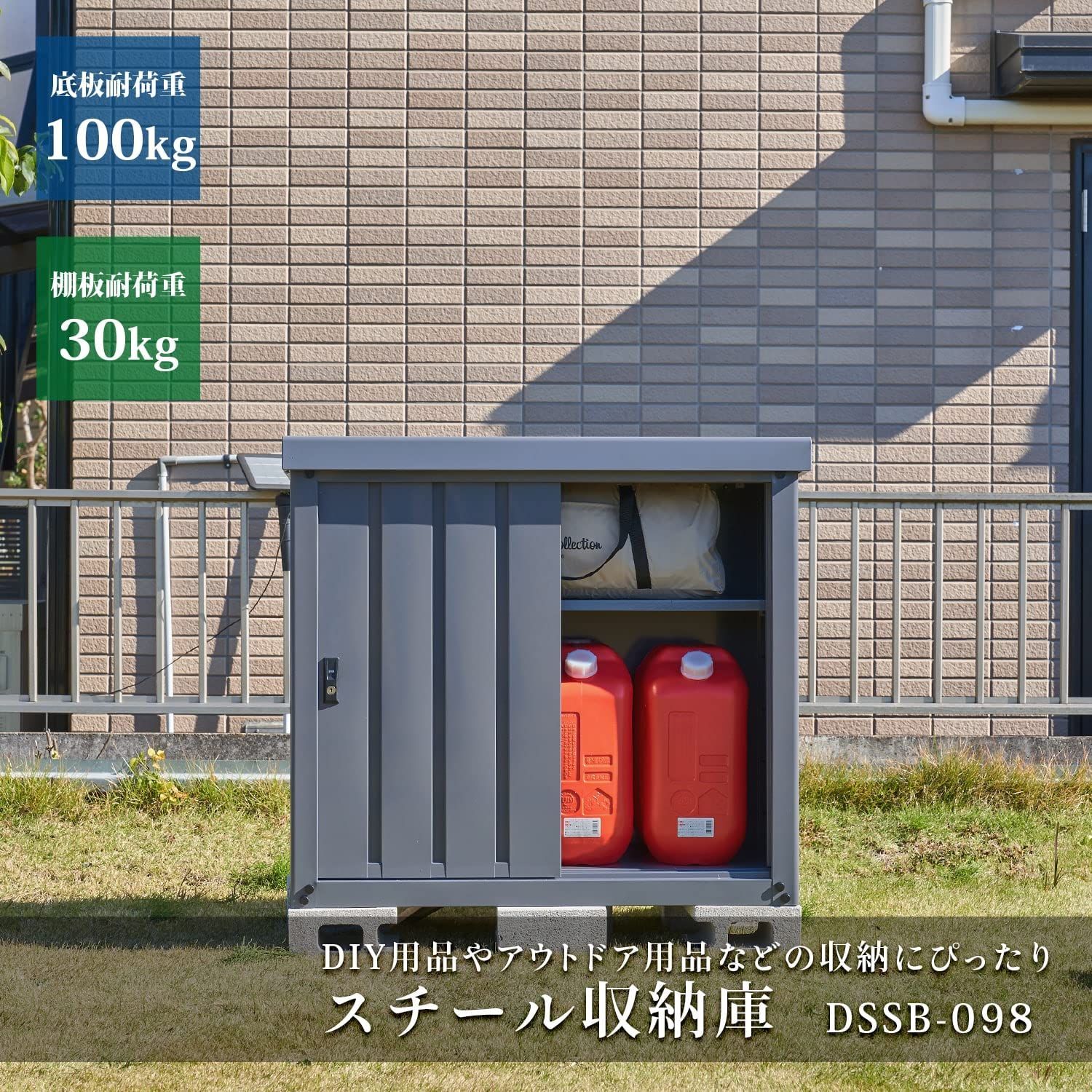 [ガーデンマスター] 物置 屋外 収納庫 小型 幅90×奥行45×高さ84㎝ 安心設計 吊り戸式 可動棚10㎝間隔 棚板補強加工 鍵付き 転倒防止設計 DSSB-098 限定グレー