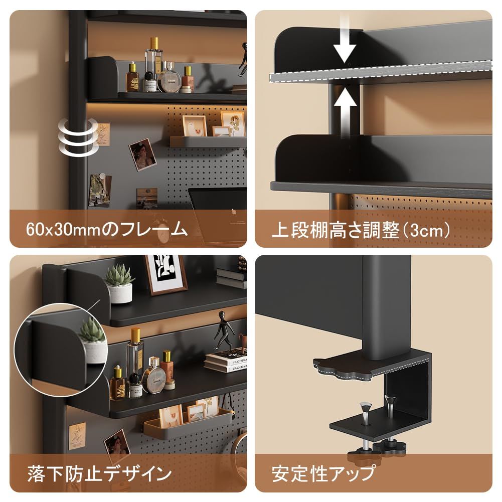 【DIY収納デスク上置棚】 デスク上ラックは有孔ボード設計を採用し、イヤホンや鍵、小物を自由に掛けて収納できます。優れた収納力を発揮し、デスク空間を有効活用しながら、個性的で機能的なスタイルを作り出します。