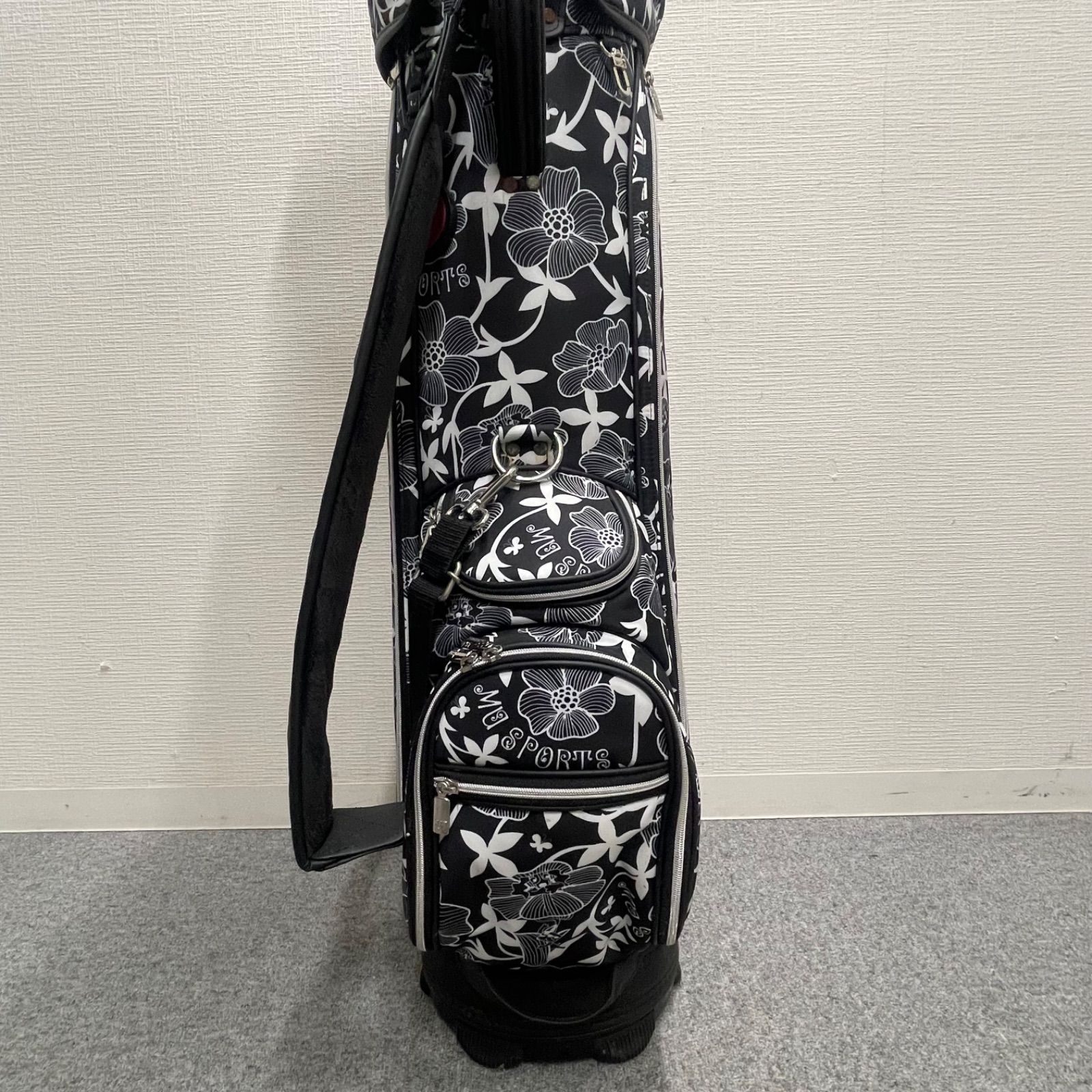 NPA MU sports ゴルフバッグ キャディバッグ 花柄 黒×白