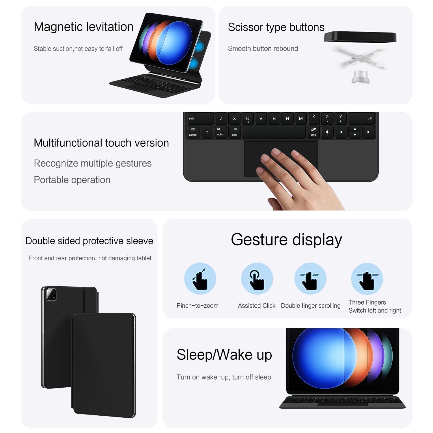 マジック キーボード Xiaomi Pad 6 S Pro 12 4インチ マグネット式 タッチパッド バックライト付き 磁気吸着 シャオミ キーボードケース タッチパネル搭載 マルチタッチ フローティン