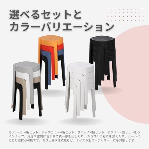 【商品詳細】 セット内容:4脚セット(バリエーション選択可) サイズ(約):画像参照 素材:プラスチック カラー展開:モノトーン、、ポップカラー、ブラック、ホワイト 組立不要でそのまま使用可能